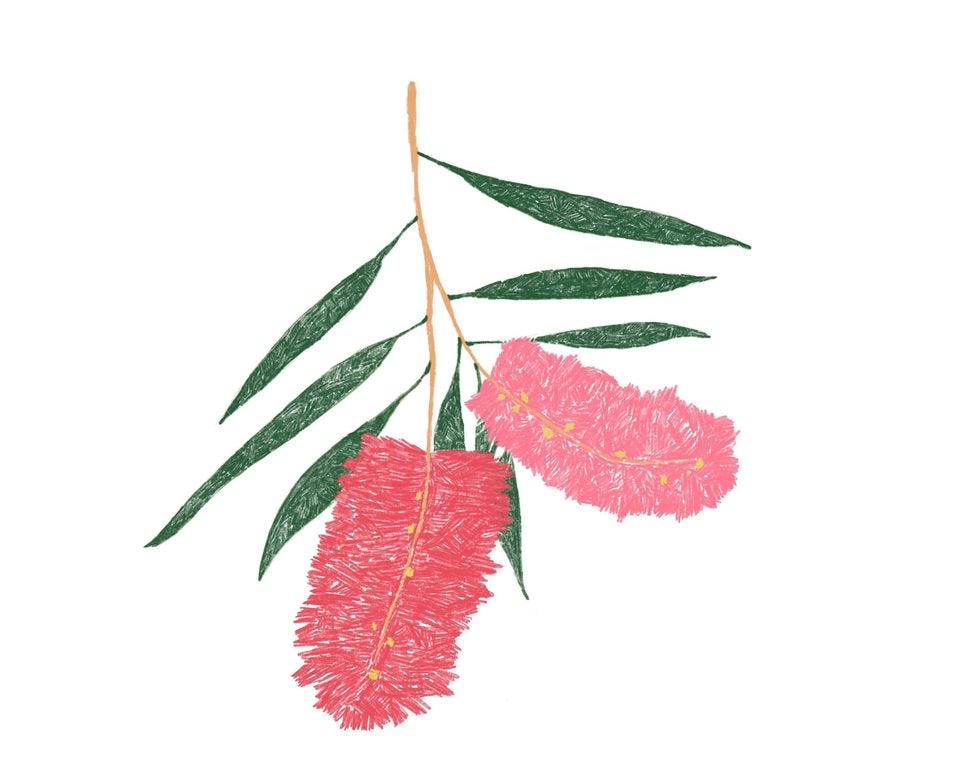 They’re far from home too, I learned. Bottlebrushes are a native Australian bush flower. To the Bundjalung people, it’s known as ‘mahram’, a flower that celebrates birth; all that is new and sustaining. It is said to have healing powers for those who are nostalgic and pining for the past; its oil essence can be used to aid in transitions in life, big and small, granting the ability to let go, move through life and open up space for what’s to come.